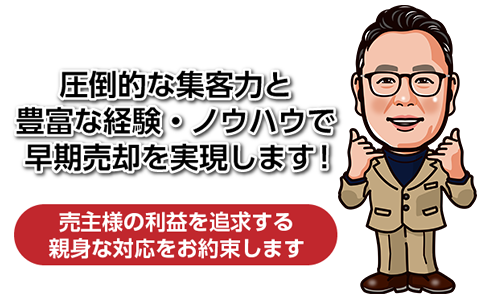 地域密着の強みと積み重ねた経験を活かし、自社ホームページでの集客と独自ネットワークでお客様を紹介できるため、早期売却が可能です。